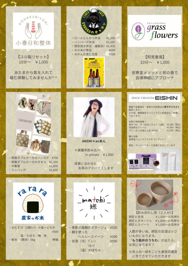 ・10月19日(日)に安寿堂秋祭りに出店させていただきます。
