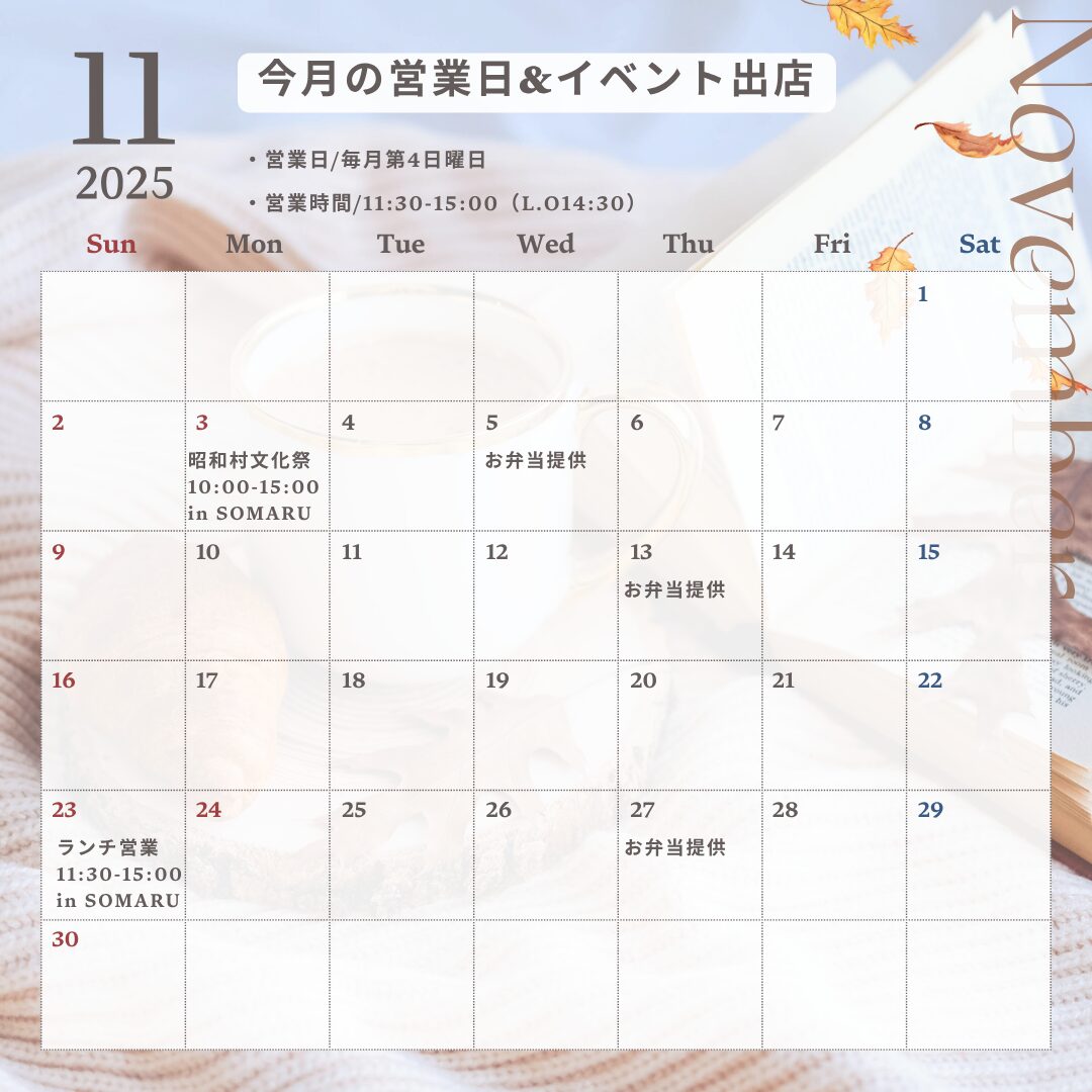 ・次回は11月23日(日)にシェアキッチンSOMARUさんで営業。