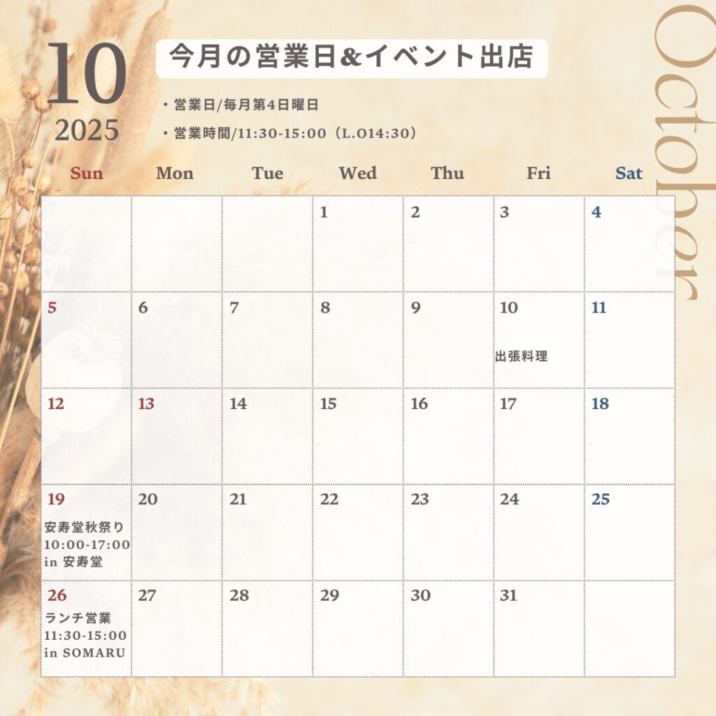 ・次回は10月26日(日)にシェアキッチンSOMARUさんで営業。