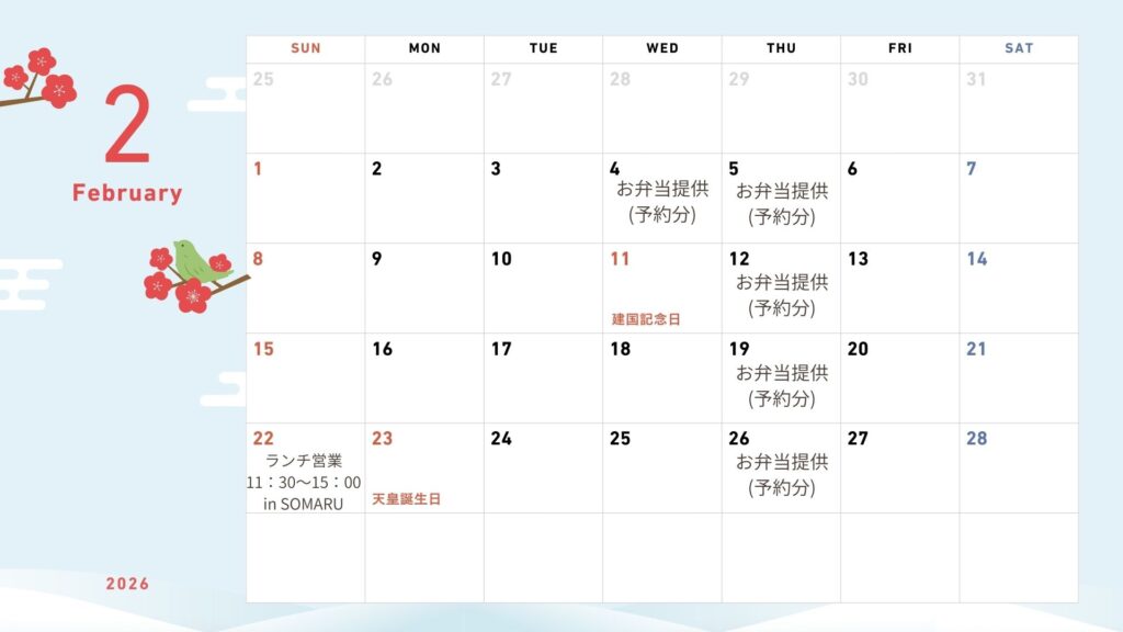 ・次回は2月22日(日)にシェアキッチンSOMARUさんで営業。