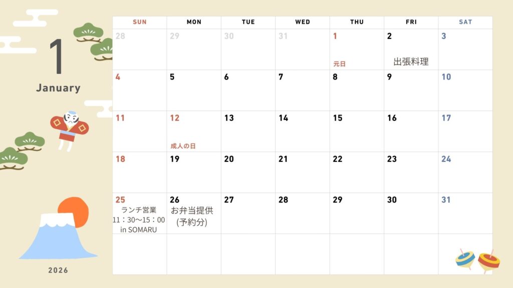 ・次回は1月25日(日)にシェアキッチンSOMARUさんで営業。