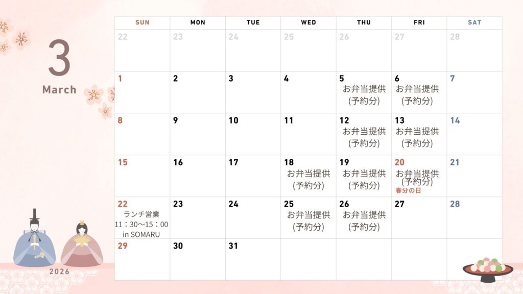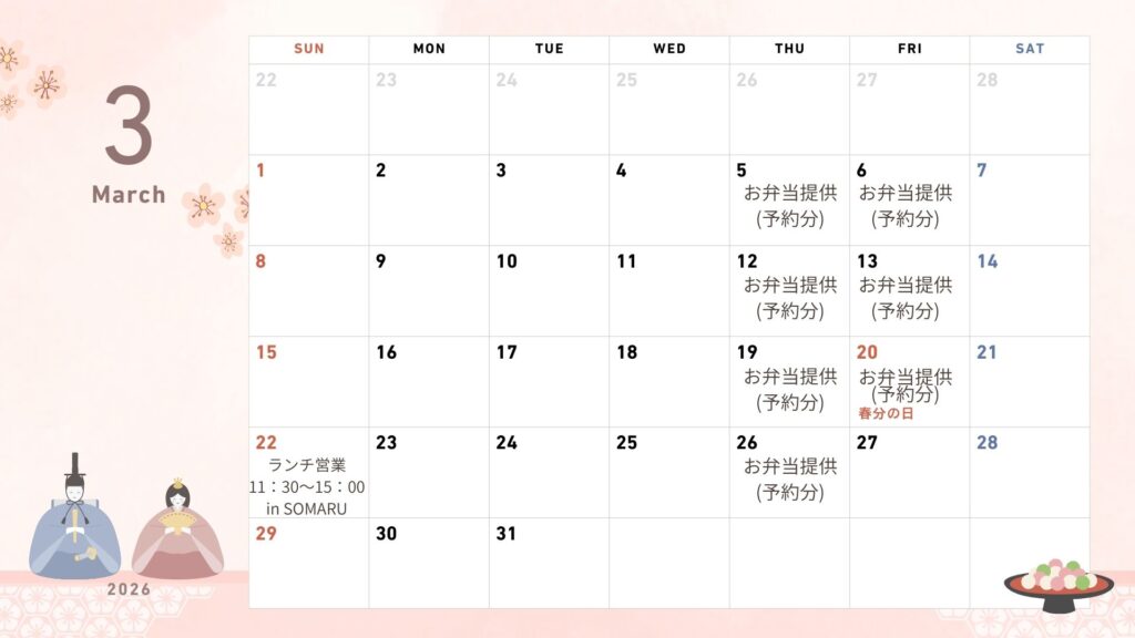 ・次回は3月22日(日)にシェアキッチンSOMARUさんで営業。